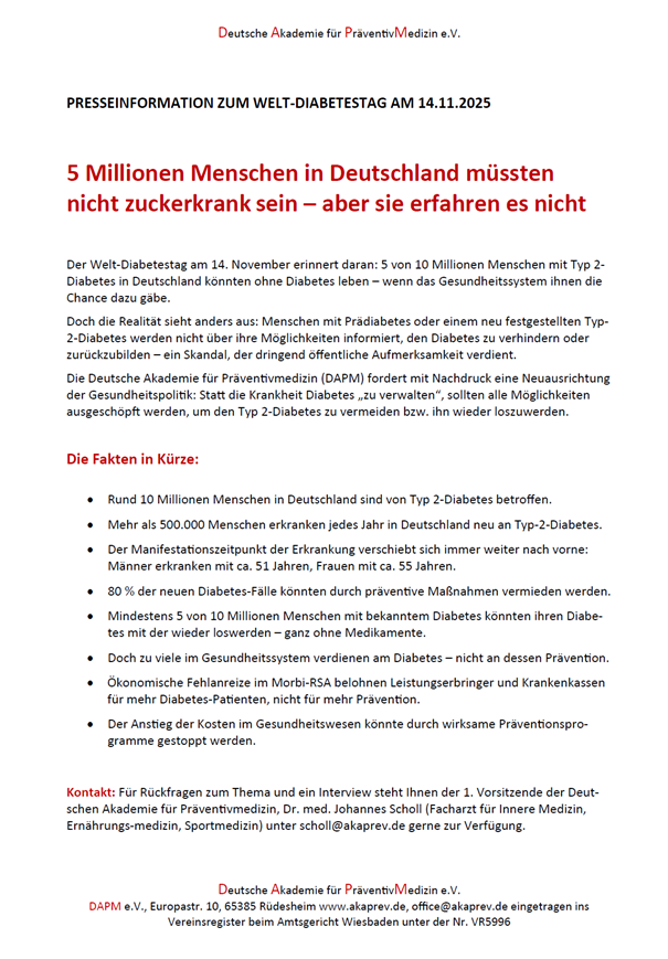 Lesen Sie die Pressemitteilung der DAPM zum Welt-Diabetestag am 14.11.2025 PM Welt-Diabetestag 2025